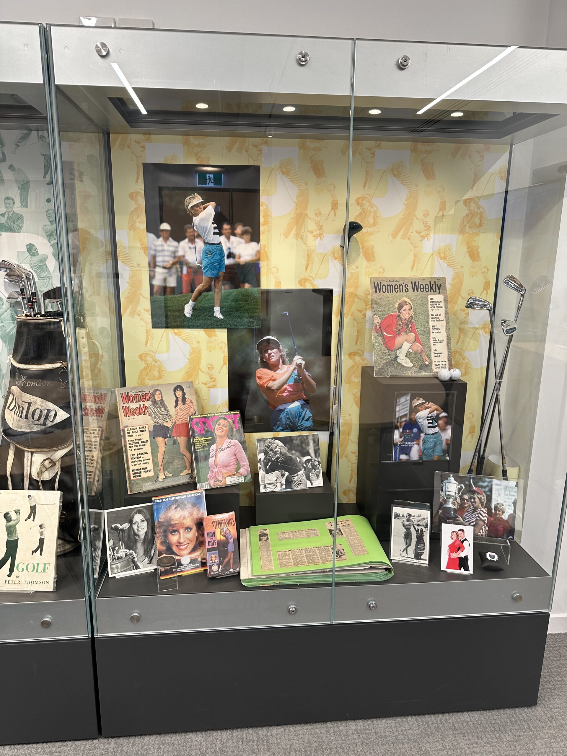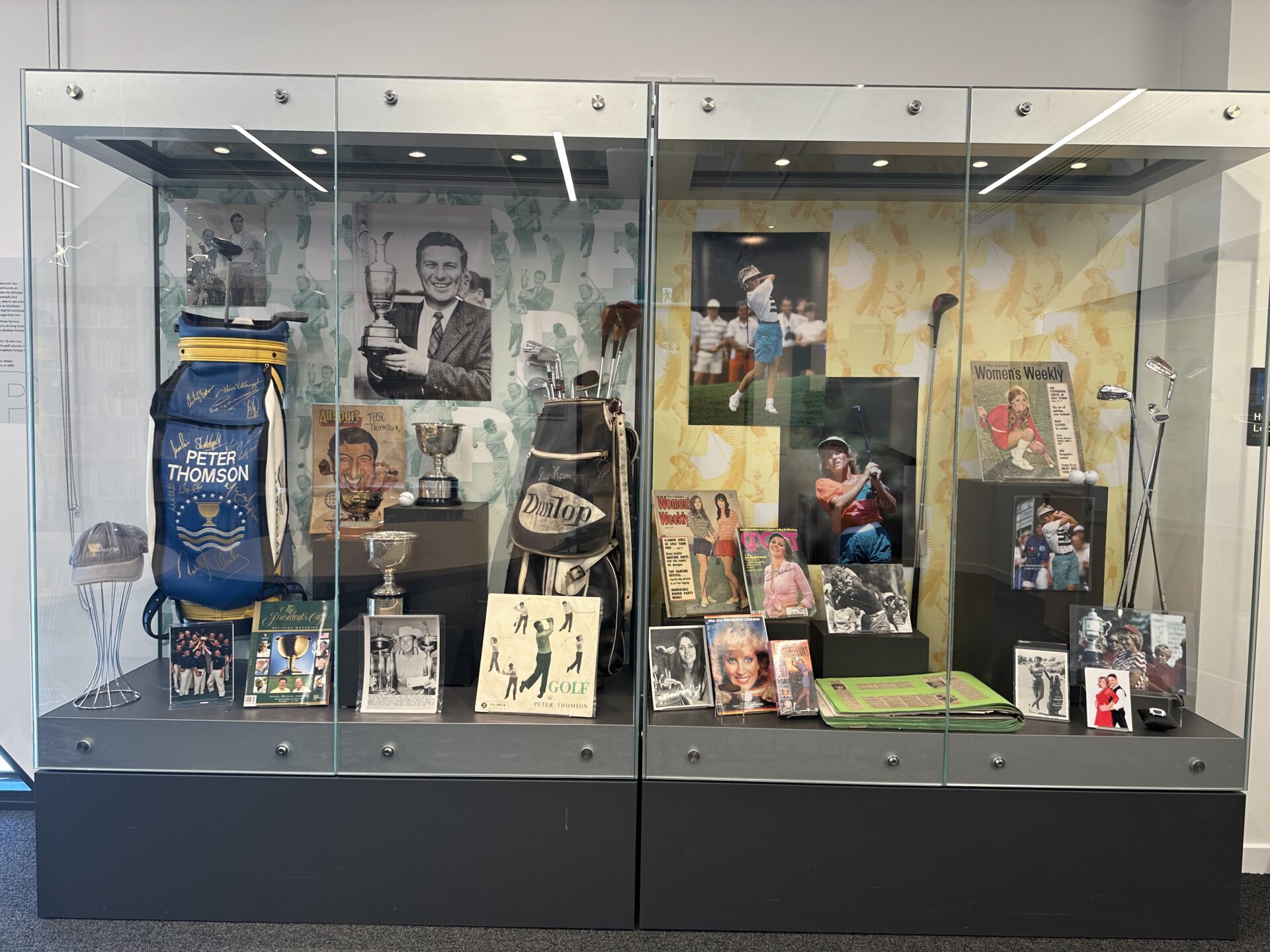 The much enjoyed Burtta Cheney and Peter Toogood displays have been dismantled and the cabinets now feature two legends of Australian professional golf in Peter Thomson and Jan Stephenson.